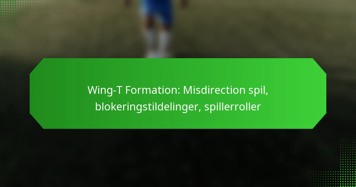 Wing-T formationen er en dynamisk offensiv strategi i fodbold, der prioriterer misdirection og bedrag for at overliste forsvarsspillere. Ved at anvende en unik spillerjustering skaber den muligheder for forskellige løbespil, mens den er afhængig af præcise blokeringstildelinger og klart definerede spillerroller for at forbedre teamwork og udførelse.